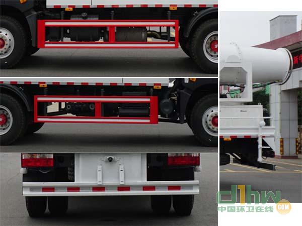 該車(chē)型是裝配專(zhuān)用裝置為噴灑裝置,儲(chǔ)液罐等,主要用于各種場(chǎng)所除塵.選裝不同型號(hào)后部風(fēng)機(jī)對(duì)應(yīng)不同高度.長(zhǎng)(mm)/軸距(mm)/后懸(mm)/后伸(mm)分別對(duì)應(yīng)為:8450/3950/2790/480,9000/4500/2790/480.防護(hù)材料:Q235,連接方式:左右側(cè)面及后下部防護(hù)均采用焊接連接,后部防護(hù)裝置斷面尺寸(寬×高)50×120(mm),后部防護(hù)離地高度(mm):450(mm).隨底盤(pán)選裝駕駛室.ABS系統(tǒng)生產(chǎn)廠家,型號(hào) :焦作博瑞克控制技術(shù)有限公司,J ABS.安裝具有衛(wèi)星定位功能的行駛記錄儀.僅用3950(mm),4500(mm)軸距底盤(pán).
