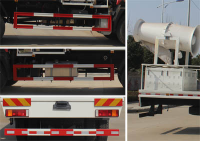 該車用途為抑塵降霾。主要裝置為水罐、風(fēng)機.罐體有效容積為:15立方米;運輸介質(zhì):抑塵劑水溶液;密度:800千克/立方米;罐體外形尺寸(長×長軸×短軸)(mm):4500×2420×1650. 2,該車后端安裝風(fēng)機為320度旋轉(zhuǎn),當(dāng)旋轉(zhuǎn)到車輛最后端時,后伸量/整車長度對應(yīng)關(guān)系為800mm/11300mm; 1200mm/11700mm.當(dāng)整車無后伸時,整車長度為10500mm.側(cè)防護(hù)采用碳鋼/Q235B,螺栓連接。后防護(hù)采用碳鋼/Q235B,焊接,截面高120mm,截面寬50mm,下邊緣離地高510mm。隨底盤選裝排氣管位置。ABS系統(tǒng)型號為4460046300,生產(chǎn)企業(yè)為威伯科汽車控制系統(tǒng)(中國)有限公司,前部選裝靜音箱,后部左側(cè)或右側(cè)選裝噴霧機控制柜,選裝風(fēng)機樣式和型號,選裝前部發(fā)動機保護(hù)罩樣式.選裝湖南九九礦安裝備有限公司所研發(fā)的高效節(jié)能專利"高效節(jié)能風(fēng)送式噴霧除塵機",專利號:ZL201420094123.1。
