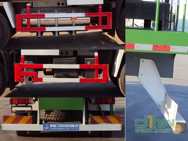 該車側(cè)面,后部均安裝有車身反光標(biāo)識(shí)。1,運(yùn)輸介質(zhì)為水,密度:1000千克/立方米,2,罐體有效容積:11.61立方米;3,罐體外形尺寸(長(zhǎng)/長(zhǎng)軸/短軸)(mm):4720/2300/1600;4,側(cè)防護(hù)材料為Q345B,用螺栓連接;后防護(hù)材料為Q235A 100X100方管,與車架采用螺栓連接,后防護(hù)離地高度為480mm,該車已安裝具有衛(wèi)星定位功能的行駛記錄儀。ABS系統(tǒng)型號(hào)為4460046300,生產(chǎn)企業(yè)為威伯科汽車控制系統(tǒng)(中國(guó))有限公司。