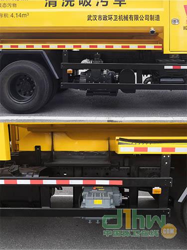 吸污罐罐體外形尺寸(直徑×直段長)(單位:毫米):1500×3384;吸污罐有效容積為7.84立方米,介質(zhì)為液態(tài)污物,密度:950千克/立方米。清水罐截面為多邊形組成,截面積為0.5914平方米,長度為3500毫米,清水罐的有效容積為4.14立方米,介質(zhì)為水,密度是1000千克/立方米。清水罐和污水罐不能同時(shí)滿載。側(cè)防護(hù)與后防護(hù)所用材料材質(zhì)均為Q235A,側(cè)防護(hù)與副車架螺栓連接,后防護(hù)與大梁焊接固定,后防護(hù)斷面尺寸為120毫米×50毫米,離地高度為420毫米。僅采用底盤軸距為4500毫米。ABS型號:3631010-C2000、4460046440;生產(chǎn)廠家:東科克諾爾商用車制動(dòng)系統(tǒng)(十堰)有限公司、威伯科汽車控制系統(tǒng)(中國)有限公司。隨底盤選裝駕駛室。