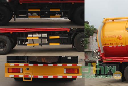 該車用途為吸污清洗,主要裝置為水罐、污罐.罐體尺寸為長(zhǎng)×直徑(mm):7100×2350,其中水罐罐體外形尺寸(長(zhǎng)×直徑)(mm):3150×2350.罐體有效容積:12.4立方米,運(yùn)輸介質(zhì):水,密度:1000千克/立方米;吸污罐罐體外形尺寸(長(zhǎng)×直徑)(mm):3950×2350,罐體有效容積:15.5立方米,運(yùn)輸介質(zhì): 液態(tài)污物,密度:800千克/立方米.水罐和吸污罐為兩個(gè)獨(dú)立罐體,清洗功能時(shí)用水罐,吸污功能時(shí)用吸污罐,清水罐和污水罐不能同時(shí)滿載.整車長(zhǎng)/前懸/軸距/后懸(mm)對(duì)應(yīng)關(guān)系為:11985/1500/2050+4400+1350/2685;11985/1500/2050+4400+1400/2635.側(cè)面及后下部防護(hù)裝置的材質(zhì)為Q235;側(cè)、后防護(hù)與車架連接方式為焊接連接,后部防護(hù)裝置的截面尺寸為50mm×360mm,離地高度為420mm.ABS:東科克諾爾商用車制動(dòng)系統(tǒng)(十堰)有限公司;型號(hào):3631010-C2000.選裝高度不同的駕駛室,選裝駕駛室前面罩,高頂駕駛室頂部氣喇叭為選裝件,側(cè)窗選裝樹脂裝飾板,前霧燈為選裝件,選裝駕駛室頂部裝飾燈,選裝駕駛室及對(duì)應(yīng)燈具和后視鏡.
