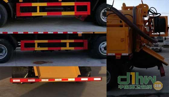 1.該車僅選用軸距3308mm,該車用途為吸污清洗,主要裝置為罐體,2.污水罐載質量2440kg,污水罐有效容積:3.20立方米, 罐體外形尺寸(長×直徑)(mm):3100×1200,運輸介質: 液態(tài)污物,密度:800千克/立方米;清水罐載質量2440kg,清水罐有效容積: 2.56立方米,罐體外形尺寸(長×長軸×短軸)(mm): 3000×700×750,運輸介質: 水,密度:1000千克/立方米;水罐和吸污罐為兩個獨立罐體,清洗功能時用水罐, 吸污功能時用吸污罐,清洗吸污兩種功能不同時使用,兩個罐體不能同時滿載3,側,后防護材料均采用Q235,側防護螺栓連接,后防護焊接,截面尺寸(mm):100×50,離地高420mm.4,ABS廠家及型號:襄陽東風隆誠機械有限責任公司/ABS/ASR-24V-4S/4M.5,隨底盤選裝駕駛室.
