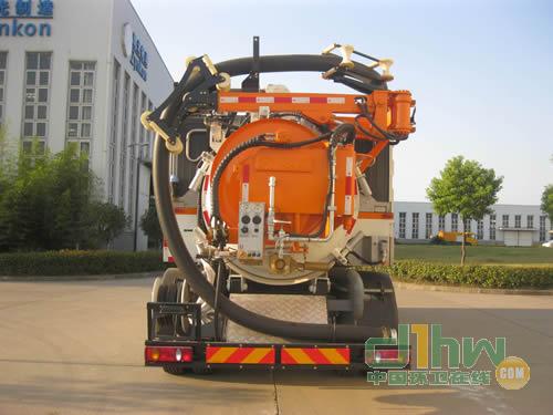 污水罐有效容積7.9立方米,罐體外形尺寸(直徑×直段長)(mm):1600×3600,選裝污水罐外形尺寸(直徑×直段長)(mm ):1700×3400,,運輸介質(zhì)為液態(tài)污物,介質(zhì)密度為800千克/立方米。水罐是由2個相同的梯形罐體組成,單個罐體外形尺寸(上底+下底)×高×長(mm):(767+563)×1255×2900,有效容積3.65立方米。清洗吸污兩種功能不同時使用,兩個罐體不能同時滿載。側(cè)面防護裝置材料:3A21,連接方式:橫豎桿之間螺栓連接,與車架之間螺栓連接。后下部防護裝置材料為:Q235-A,截面尺寸為:140×58(mm),連接方式:和連接槽鋼之間焊接,連接槽鋼和車架之間螺栓連接,離地高度470mm。ABS型號:3631010-C2000,4460046440;生產(chǎn)廠家:東科克諾爾商用車制動系統(tǒng)(十堰)有限公司,威伯科汽車控制系統(tǒng)(中國)有限公司。僅選用軸距為4700mm和4500mm的底盤。主要專用裝置為真空抽吸及高壓清洗系統(tǒng)。隨底盤選裝駕駛室前臉擾流罩.選裝前霧燈.駕駛室頂部裝飾燈為選裝件.選裝臥鋪側(cè)窗裝飾板。選裝盤式吸污臂。