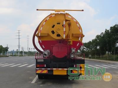 采用高壓水噴射的方式,將下水道中的污物沖至下水道沉井,液壓傾翻卸料對(duì)下水道進(jìn)行疏通作業(yè)。
