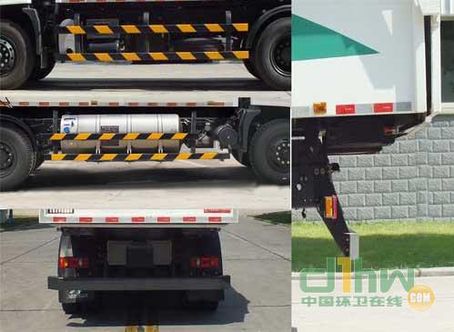 1,該車采用軸距4500mm,3800mm,對(duì)應(yīng)整車長(zhǎng)度為8040mm,6655mm,對(duì)應(yīng)的后懸為2110mm,1425mm,對(duì)應(yīng)的整備質(zhì)量為8700kg,8100kg.2,側(cè)防護(hù)和后防護(hù)連接方式均為螺栓連接,側(cè)防護(hù)裝置所用材料材質(zhì)為Q235,后防護(hù)裝置所用材料材質(zhì)為Q345,后防護(hù)截面尺寸為140×60(mm),離地高度為520mm.3,ABS型號(hào)為ABS-E 4S/4M和3631010-C2000,生產(chǎn)廠家為威伯科汽車控制系統(tǒng)(中國(guó))有限公司和東科克諾爾商用車制動(dòng)系統(tǒng)(十堰)有限公司.4,該車安裝帶衛(wèi)星定位功能的行駛記錄儀.5,該車僅采用10.00R20(18PR),10.00-20(18PR),11.00-20(16PR/18PR), 11.00R20(16PR/18PR),295/80R22.5輪胎.6,該車主要功能:收集垃圾和與大型垃圾車對(duì)接裝料;主要專用裝置:車箱,副車架裝置.選裝箱體外形及右側(cè)防護(hù).7,選裝駕駛室.