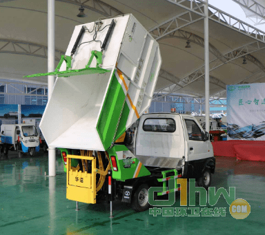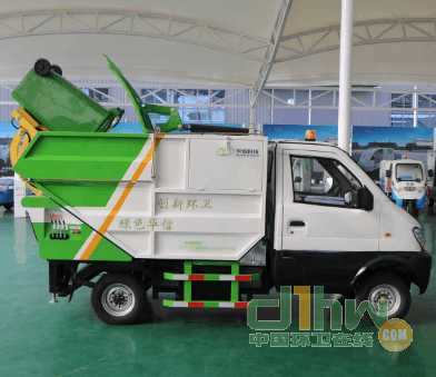 4、車輛尾部的翻桶機構(gòu):結(jié)構(gòu)新穎,操作簡單,行駛途中,即可輕松的將道路兩邊的桶裝垃圾或散裝垃圾從低位翻轉(zhuǎn)到垃圾箱體內(nèi);