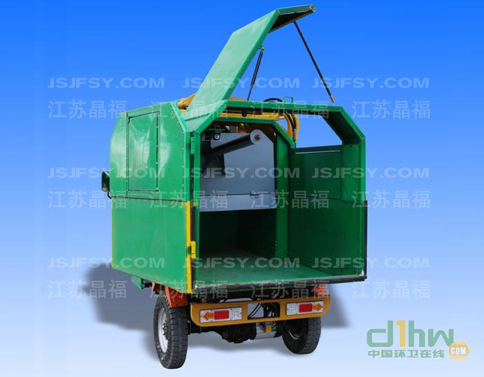 晶福JF-3309T電動三輪翻桶推移車可自動收集240L或120L垃圾桶中的雜物并將雜物向后擠壓,增加貨箱裝載容積,減輕了倒桶過程中的作業(yè)強度;垃圾箱體采用工程液壓自卸,作業(yè)輕松方便;箱體尾部呈拋物線式揚起,有效保證液體垃圾在運輸過程中不會產(chǎn)生二次拋灑。此款車廣泛用于環(huán)衛(wèi)、街道、廣場、商業(yè)街區(qū)、公園、居民區(qū)等垃圾收集轉(zhuǎn)運。