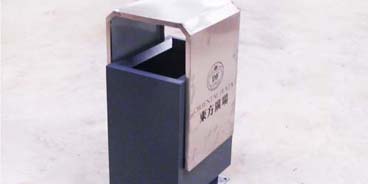 F140不銹鋼果皮箱頂蓋 采用不銹鋼制作;桶身 采用冷軋鋼板加工制作防腐、防銹,標識采用進口油墨絲網(wǎng)印刷圖案,色艷持久,非沖孔設計解決孔銹問題。內膽 采用FRP玻璃鋼材料制造,具有防腐、防盜、易清潔等特點。