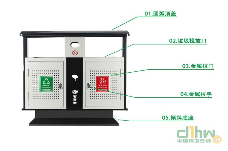鋼制垃圾桶HT-GZ5690,該產(chǎn)品整體采用優(yōu)質(zhì)的鍍鋅鋼板生產(chǎn)加工而成,產(chǎn)品顏色為:黑灰色,規(guī)格為長1000mm寬350mm高1000mm,本款戶外分類鋼制北京桶整體采用優(yōu)質(zhì)鍍鋅板,經(jīng)折彎沖壓一次性成型.產(chǎn)品一律用室外粉靜電噴塑,經(jīng)過180°的高溫,限度延長了垃圾桶的使用壽命,使垃圾桶顏色持久不變,亮麗如新.表面經(jīng)除油——清洗——酸洗——清洗——表調(diào)——磷化——清洗——烘干——靜電粉末噴涂——高溫塑化——冷卻.噴涂粉末經(jīng)ISO9002質(zhì)量體系認證,易保潔表面光滑之優(yōu)點,不脫落,不起層。,HT-GZ5690鋼制垃圾桶也可按照您的具體需求可定制尺寸和顏色,可印制LOGO及文字,詳見說明或咨詢客服.環(huán)泰愿為環(huán)保護航,一切為您,放心采購。