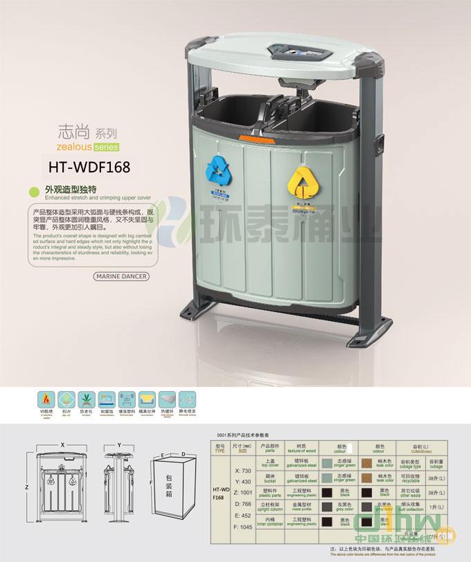 鋼制垃圾桶HT-WDF168,該產(chǎn)品整體采用優(yōu)質(zhì)的電解溶鍍鋅板,塑料生產(chǎn)加工而成,產(chǎn)品顏色為:白色,規(guī)格為長730mm寬428mm高1001mm,本款萬德福分類垃圾桶1、桶身增強設計 桶身表面為凹凸形狀,抗沖擊強度大大提高。桶身材料采用厚度≥0.8mm熱鍍鋅電解冷軋鋼板作為基材,并使用用冷拉伸模具油壓一次成形;桶身兩側(cè)使用內(nèi)折邊冷鉚拼接工藝,整體無焊點,抗沖擊性能與耐腐蝕性能是普通平板桶身的3倍以上。 2、增強型梯形立柱 立柱截面使用面包狀梯形造型,內(nèi)側(cè)面設計有加強型壓制溝槽,抗扭屈、抗沖強度大幅提高。立柱材料采用厚度≥1.0mm熱鍍鋅電解冷軋鋼板為基材,通過冷壓卷曲工藝成型,內(nèi)側(cè)面加強溝槽使用油壓成型工藝,立柱整體抗扭屈、抗沖擊強度是普通方管或圓管的1.5倍以上。 3、橫梁穿透式焊接 支架上下橫梁采用厚度≥1.0mm,截面尺寸20mm X 20mm熱鍍鋅方管,與立柱連接采用穿透式內(nèi)部兩面滿縫焊接工藝,橫梁連接牢固強度,支架整體抗扭屈性能比外側(cè)連接點焊型支架提高2倍以上,而且使用穿透式內(nèi)部焊接工藝,支架外部無焊點,更加耐腐蝕,更美觀。 4、穿透式焊接立體地腳把 地腳把采用厚度≥2.0mm熱鍍鋅電解冷軋鋼板為基材,并使用冷拉伸模具油壓一次成形,與立柱連接采用穿透式內(nèi)部滿縫焊接工藝,連接牢固強度高,外表無焊點;地腳把與地面為中空周邊接觸,更加耐腐蝕;膨脹螺栓固定時可獲得彈性預壓力,固定更加牢固。支架整體抗腐蝕性能、固定強度比地腳把平面焊接型支架提高1倍以上。 5、不銹鋼滅煙板搭配抽拉式煙灰盒 滅煙板采用厚度≥0.8mm拉絲不銹鋼材質(zhì)經(jīng)冷拉伸模具沖壓一次成形,表面同時帶有滅煙孔與煙蒂投遞孔,外圈裝有防護罩,下方安裝有鋁合金自動回位抽拉式煙灰盒,煙灰盒容積1L;比普通外置式滅煙板(碗)更能有效防止煙灰、煙蒂飛散產(chǎn)生的二次污染,清理更方便,更加美觀耐用。 6、VO阻燃、抗老化、抗UV、高耐候、高強度工程塑料 產(chǎn)品所有塑料部件均采用V0阻燃級別、抗老化、抗UV、高耐候、高強度工程樹脂材料采用模具一次性注塑制成,在材料性能上不亞于金屬材質(zhì),整體生命周期卻遠高于金屬部件1倍以上。,HT-WDF168鋼制垃圾桶也可按照您的具體需求僅定制顏色,詳見說明或咨詢客服.環(huán)泰愿為環(huán)保護航,一切為您,放心采購。