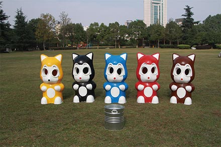 卡通小狐貍玻璃鋼垃圾桶是采用多種復(fù)合材料制作而成,其中包含了表層膠衣,結(jié)構(gòu)層玻璃纖維加不飽合樹(shù)脂,通過(guò)玻璃鋼模具采用手工涂層工藝制作而成。其特點(diǎn)是能抵抗各種惡劣環(huán)境,防腐防潮,抗老化,結(jié)構(gòu)簡(jiǎn)單實(shí)用,顏色光鮮,造型精美,使用壽命長(zhǎng)且不掉色。容量大,易于維護(hù)。首先在模具表面涂上一層美國(guó)進(jìn)口8號(hào)脫模臘之后,擦干凈,反復(fù)兩到三次,其目的是起到產(chǎn)品與模具分離的作用