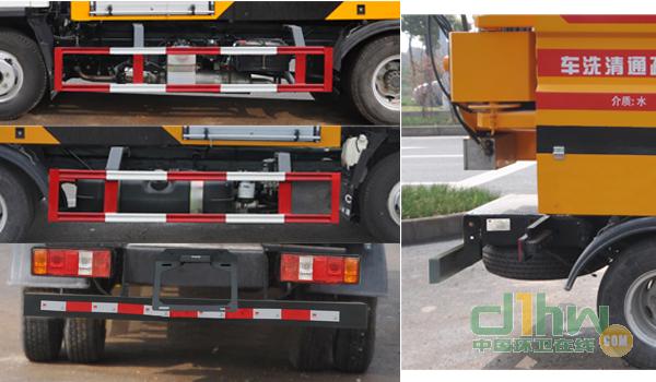 罐體有效容積為:4.0立方米,罐體由多邊形和圓弧組成,外形尺寸(長(zhǎng)×寬×高mm);1950×2080×1280,介質(zhì)為清水,密度為:1000千克/立方米,長(zhǎng)度/前懸/軸距的對(duì)應(yīng)關(guān)系;5960/1140/3360;5878/1110/3308;側(cè)防護(hù)與后防護(hù)所用材料材質(zhì)均為Q235,側(cè)防護(hù)和后防護(hù)均采用與車輛螺栓連接,后下部防護(hù)裝置的斷面為U型,斷面尺寸為120mm×50mm,離地高度為410mm;ABS控制器型號(hào)/廠家:ABS 8/克諾爾制動(dòng)設(shè)備(上海)有限公司,VIE ABS-Ⅱ/浙江萬(wàn)安科技股份有限公司;該車帶OBD,專用裝置由水箱和高壓水泵及疏通絞盤組成,專用功能是對(duì)城市下水道管網(wǎng)進(jìn)行疏通。