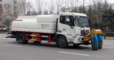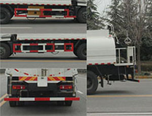 該車主要用于城市隔離護(hù)欄清洗作業(yè)。車輛左側(cè)為專用作業(yè)裝置,右側(cè)防護(hù)采用冷彎型鋼/Q235-A,螺栓連接。后防護(hù)與車輛結(jié)構(gòu)為一體。車輛后部離地高度545mm。作業(yè)裝置選裝兩豎四橫清洗裝置或兩豎六橫清洗裝置,選裝一:兩豎四橫清洗裝置刷輥總數(shù)為6個,其中前刷輥為豎置,數(shù)量為2個;后刷輥為橫置,數(shù)量為4個。選裝二:兩豎六橫清洗裝置刷輥總數(shù)為8個,其中前刷輥為豎置,數(shù)量為2個;后刷輥為橫置,數(shù)量為6個。作業(yè)裝置選裝兩豎四橫清洗裝置或兩豎六橫清洗裝置時,總質(zhì)量(kg)/整備質(zhì)量(kg)/載質(zhì)量(kg)/準(zhǔn)乘人數(shù)(人)對應(yīng)關(guān)系分別為:5880/4840/910/2;5880/4880/870/2。該車可選裝右側(cè)護(hù)欄清洗裝置。隨底盤選裝駕駛室。ABS系統(tǒng)型號:APG3550500A,ABS系統(tǒng)生產(chǎn)廠家:浙江亞太機(jī)電股份有限公司。