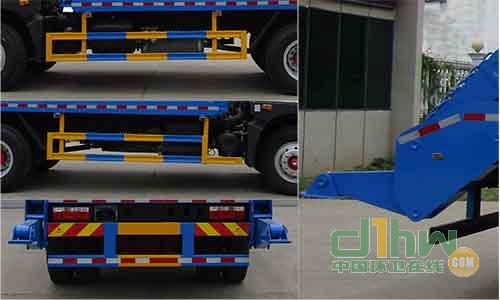 該車裝備有可回轉(zhuǎn)的起重?cái)[臂,車斗或集裝垃圾懸吊在起重臂上,隨起重?cái)[臂回轉(zhuǎn),起落,用于實(shí)現(xiàn)垃圾自裝卸的專用車輛。該車整車長/軸距/整備質(zhì)量對應(yīng)關(guān)系為(mm):8100/4700/7250,7900/4500/7250,7350/3950/6660;側(cè)后部防護(hù)材料為Q235,連接方式為焊接連接,后部防護(hù)裝置斷面尺寸(寬×高)50×100(mm),離地高為510(mm)。安裝具有衛(wèi)星定位功能的行駛記錄儀.ABS系統(tǒng)生產(chǎn)廠家,型號 :焦作博瑞克控制技術(shù)有限公司,J ABS。采用的發(fā)動(dòng)機(jī)型號與油耗值對應(yīng)關(guān)系為(L/100km): YC4EG170-50/25.2,YC4EG185-50/25.3,ISB210 50/26.5,ISB180 50/27.8,ISD160 50/26.3,YC4S160-50/26.6。