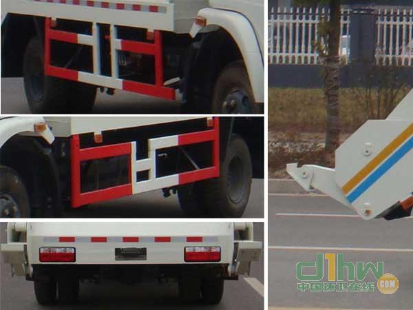 隨底盤選裝駕駛室;側(cè)面防護(hù)裝置材料材質(zhì):Q235,連接方式:焊接加螺栓連接;后下部防護(hù)裝置為整體式結(jié)構(gòu),離地高度:540mm;ABS型號:ABS/ASR-24V-4S/4M,廠家:襄陽東風(fēng)隆誠機(jī)械有限責(zé)任公司