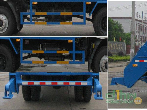 該車型主要用于各類專用擺臂垃圾廂清理及運輸,主要裝置為擺臂及液壓裝置.側防護材料為Q235,聯(lián)接方式為連接支架固焊在付車架大梁上.因后部結構需要無法安裝,后防護專用裝置代替,離地高為500(mm).選M31B新面罩,選M30B新面罩,選臥鋪側開窗,選裝遮陽罩.裝有具有衛(wèi)星定位的行車記錄儀.ABS型號/企業(yè): ABS-E 4S/4M/ 威伯科汽車控制系統(tǒng)有限公司.發(fā)動機YC6JA180-50,YC6JA200-50,ISD210 50對應油耗值均為27(L/100km).