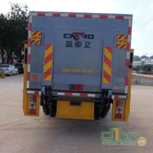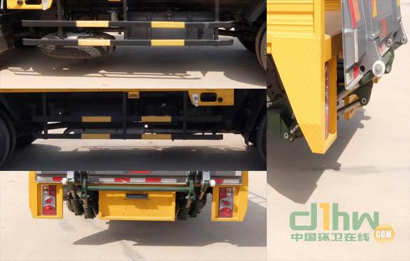 隨底盤選裝新型前面罩。尾板收起的水平狀態(tài)為:200mm。該車用于桶裝垃圾收集轉(zhuǎn)運。后伸220mm。側(cè)防護材料Q235B,螺栓連接;尾部安裝的液壓尾板裝置代替后防護,離地高度330mm。