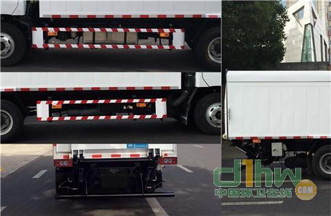 選裝前圍及前部燈具; 該車隨底盤裝ABS,廠家:威伯科汽車控制系統(tǒng)(中國)有限公司,型號:44600XXXX0.ISF3.8s5141發(fā)動機(jī)油耗值為18.83L/100km,ISF3.8s5154發(fā)動機(jī)油耗值為15.95L/100km,ISF3.8E6154發(fā)動機(jī)油耗值為18.6L/100km.側(cè),后防護(hù)材質(zhì)Q235-B,連接方式螺栓連接;后防護(hù)截面形狀圓型,直徑114mm,離地高度300mm.該車用于桶裝垃圾(含餐廚垃圾)收集轉(zhuǎn)運;專用裝置:后尾板升降機(jī)構(gòu),廂體頂蓋可抬升便于垃圾桶的搬運.該車尾板收起后,尾板末端距離車廂后部水平長度為200mm,當(dāng)涵蓋尾板尺寸時,車輛長度為7340mm,后懸為2420mm;當(dāng)不計入尾板尺寸時,車輛長度為7140mm,后懸為2220mm.