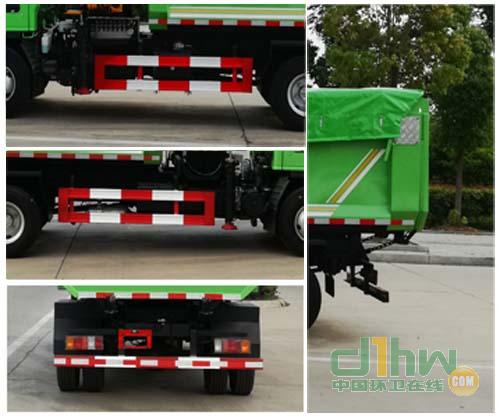 該車型是裝備舉臂油缸、篷布、起吊裝置等,用于裝卸收集生活裝修垃圾,后卸式,側(cè)后防護使用Q235螺栓連接在大梁上,后防護截面尺寸(mm)為100X50,后下部防護離地高為380mm.ABS及其控制器型號為:APG3550500A4,生產(chǎn)廠家為:浙江亞太機電股份有限公司,4KH1CN5LS油耗值為15.84L/100km