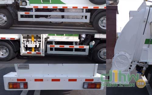 側(cè)面防護(hù)裝置材料為鋁合金,采用的連接方式為螺栓連接,后防為后門專用裝置代替,離地高度為415mm,裝有ABS,ABS及其控制器型號為:APG3550500A4,生產(chǎn)廠家為:浙江亞太機(jī)電股份有限公司。該車配置廚房垃圾收集等專用裝置。