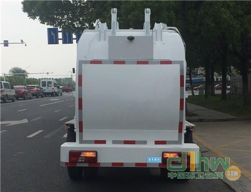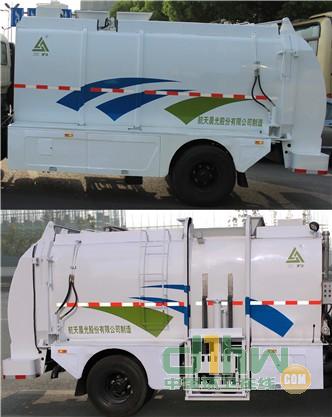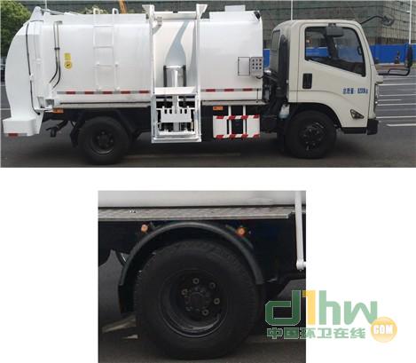 該車具有配置A型鏈條式、B型拉桿式兩種側(cè)提桶機(jī)構(gòu),配置A型側(cè)提桶機(jī)構(gòu)時整車高度為2575mm,整備質(zhì)量為5050kg,額定載質(zhì)量為2955kg;配置B型側(cè)提桶機(jī)構(gòu)時整車高度為2665mm,整備質(zhì)量為4900kg,額定載質(zhì)量為3105kg;該車可隨底盤選裝左右外后視鏡,兩種外后視鏡僅鏡桿長度不同.選裝前霧燈.短鏡桿后視鏡,不裝前霧燈外觀見選裝照片.該車可選裝一種圓弧形擋泥罩.該車可選裝側(cè)擋板裙邊結(jié)構(gòu).該車可選裝一種垃圾箱后蓋及導(dǎo)流板結(jié)構(gòu).ABS系統(tǒng)型號:VIE ABS-II,ABS 系統(tǒng)生產(chǎn)廠家:上海萬捷汽車控制系統(tǒng)有限公司.側(cè)防材料Q235,連接方式:螺栓連接.后防護(hù)由車輛尾部專用作業(yè)裝置替代,尾部專用裝置離地高490mm.