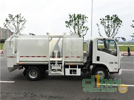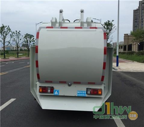 該車可配置A型鏈條式,B型拉桿式兩種側(cè)提桶機(jī)構(gòu).配置A型側(cè)提桶機(jī)構(gòu)時(shí)整車高度為2560mm,整備質(zhì)量為4600kg;配置B型側(cè)提桶機(jī)構(gòu)時(shí)整車高度為2630mm,整備質(zhì)量為4450kg. 該車裝ABS,ABS及其控制器型號(hào)為:APG3550500A4,生產(chǎn)廠家為:浙江亞太機(jī)電股份有限公司.該車可隨底盤裝4KH1-TCG51型號(hào)發(fā)動(dòng)機(jī),此時(shí),車輛最高車速為105km/h,且不裝尿素罐和排氣管后端(尿素催化還原裝置).側(cè)防材料Q235,連接方式:螺栓連接.后防護(hù)由車輛尾部專用作業(yè)裝置代替,離地高300mm.該車主要通過液壓控制系統(tǒng)實(shí)現(xiàn)餐廚垃圾的收集和轉(zhuǎn)運(yùn)專用作業(yè)功能.