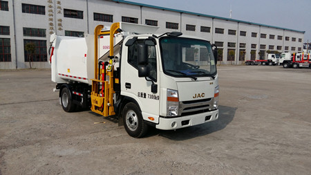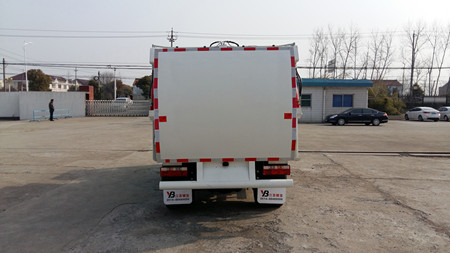 廚余車(chē)是集自動(dòng)翻料、壓縮、自動(dòng)卸料為一體的垃圾收集專用車(chē),通過(guò)液壓系統(tǒng)工作,從而提桶機(jī)構(gòu)和頂蓋工作,將垃圾桶內(nèi)垃圾倒入箱體;到指定地點(diǎn),打開(kāi)后門(mén),推出推板進(jìn)行卸料。后門(mén)采用液壓鎖緊,避免二次污染。