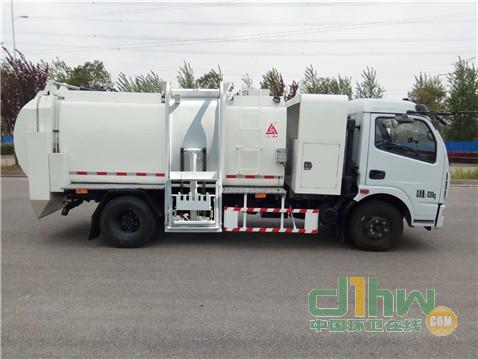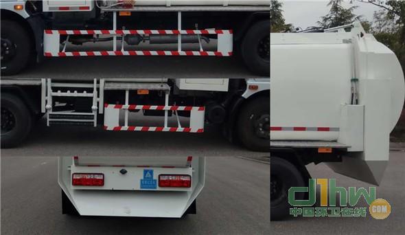 該車具有拉桿式側(cè)提桶機構(gòu),選裝鏈條式側(cè)提桶機構(gòu).當(dāng)為拉桿式側(cè)提桶機構(gòu)時,車輛高2630mm,整備質(zhì)量5440kg,額定載質(zhì)量2565kg;當(dāng)為鏈條式提桶機構(gòu)時,車輛高2570mm,整備質(zhì)量5640kg,額定載質(zhì)量2365kg.該車具有ABS, ABS廠家及型號:襄陽東風(fēng)隆誠機械有限責(zé)任公司/ABS/ASR-24V-4S/4M.側(cè)防材料Q235,螺栓連接,后部防護為車身尾部專用裝置替代,離地高度:340mm.該車主要用于收集餐飲類餐廚垃圾.