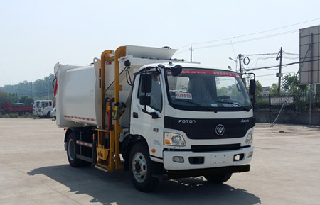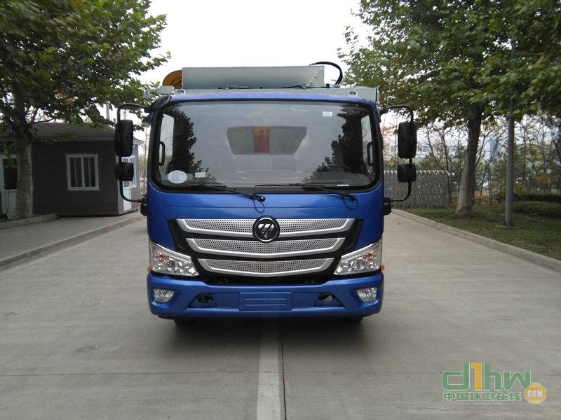 廚余車是集自動翻料、壓縮、自動卸料為一體的垃圾收集專用車,通過液壓系統(tǒng)工作,從而提桶機構和頂蓋工作,將垃圾桶內垃圾倒入箱體;到指定地點,打開后門,推出推板進行卸料。后門采用液壓鎖緊,避免二次污染。