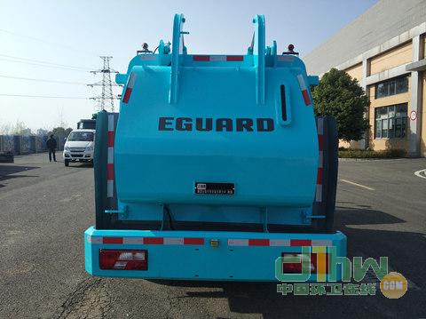 隨底盤選裝前霧燈;裝有ABS,ABS系統(tǒng)型號:VIE ABS-II,生產(chǎn)廠家:上海萬捷汽車控制系統(tǒng)有限公司;側(cè)面防護裝置材質(zhì)為鋁合金,連接方式為螺栓連接,后部防護裝置材質(zhì)為Q235A,焊接連接,斷面尺寸為360×60mm,離地高度為490mm;該車廂體有2種外觀(A型和B型),專用裝置由垃圾箱、垃圾桶提升機構(gòu)等組成,用于餐廚垃圾收集,轉(zhuǎn)運及卸料作業(yè)