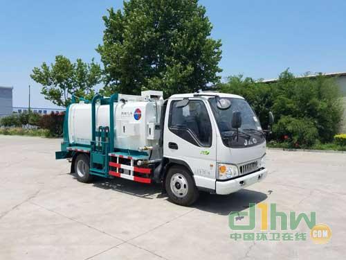 廚余車是集自動翻料、壓縮、自動卸料為一體的垃圾收集專用車,通過液壓系統(tǒng)工作,從而提桶機(jī)構(gòu)和頂蓋工作,將垃圾桶內(nèi)垃圾倒入箱體;到指定地點(diǎn),打開后門,推出推板進(jìn)行卸料。后門采用液壓鎖緊,避免二次污染。