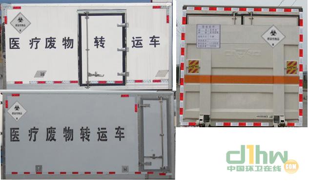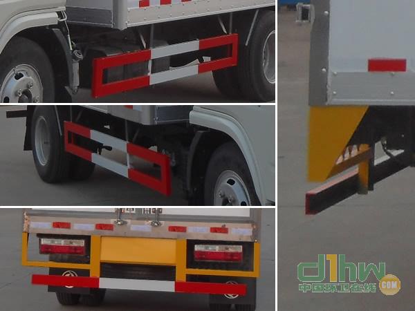 隨底盤選裝駕駛室;廂體頂部封閉,不可開啟;選裝其它廠家功率相當?shù)闹评錂C組;選裝側(cè)門位置及不帶側(cè)門;選裝液壓升降尾板(收起狀態(tài)水平長度為290mm);運輸介質(zhì):感染性物質(zhì),診斷樣品,醫(yī)院診斷廢棄物,類項號:6.2,6.2,6.2;該車為危險品貨物運輸車;僅采用前輪盤式制動器,前置排氣管,子午線輪胎,限速裝置的底盤,限速80km/h;該車安裝具有衛(wèi)星定位功能的行駛記錄儀;所有發(fā)動機對應(yīng)油耗值均為12.5L/100km;ABS廠家及型號:襄陽東風(fēng)隆誠機械有限責(zé)任公司/ABS/ASR-24V-4S/4M;側(cè)面防護及后下部防護裝置材料材質(zhì):Q235,連接方式:焊接加螺栓連接;后下部防護裝置斷面尺寸(寬×高):40×100(mm),離地高度:490mm.