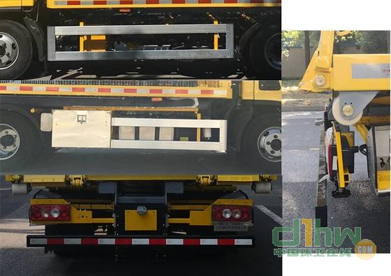 托舉質(zhì)量:345kg;上裝選裝鋁平板型結(jié)構(gòu)時外形尺寸不變,其整備質(zhì)量為:3630kg,托舉質(zhì)量為:735kg。側(cè)防護與底盤縱梁間采用螺栓聯(lián)接,材質(zhì)為Q235A;后防護與副車架間采用螺栓連接,材質(zhì)為Q235A, 后防護斷面尺寸(mm):100×50×2,離地高度380mm。 選裝ABS,ABS型號及廠家是:47660 2ZS00, 浙江亞太機電股份有限公司。