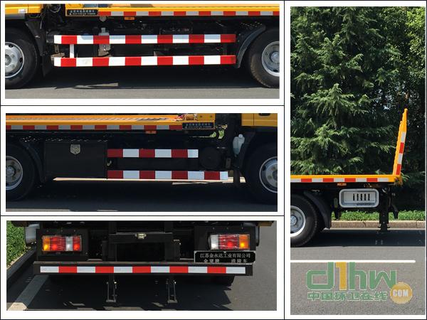 托舉質(zhì)量:500kg;選裝無后欄板;ABS及其控制器型號為:APG3550500A4,生產(chǎn)廠家為:浙江亞太機電股份有限公司;側(cè)防護與底盤縱梁間采用螺栓連接,材質(zhì)為Q235A。后防護所用材質(zhì)為Q235A,采用螺栓連接,斷面尺寸(mm):150×50,離地高度:400mm。發(fā)動機凈功率為70kW;該車專用裝置主要由平板、托臂、絞盤及液壓控制裝置等組成,并能安全、無損傷地清理、裝運故障、事故、違章的車輛。