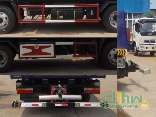 選裝擺臂平板裝置和后平板、無后拖臂、后部伸縮機(jī)構(gòu)。此車用于道路清障,專用裝置為托舉臂。托舉質(zhì)量(kg)與駕駛室準(zhǔn)乘人數(shù)(人)對(duì)應(yīng)關(guān)系是415/2,350/3;側(cè)防護(hù)裝置材料:Q235,連接方式:螺栓連接;后部裝有托臂裝置,故可豁免,離地高度為450mm.ABS生產(chǎn)廠家:威伯科汽車控制系統(tǒng)(中國(guó))有限公司,型號(hào):ABS-E 4S/4M;浙江萬安科技股份有限公司,型號(hào):VIE ABS-II.