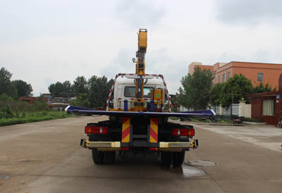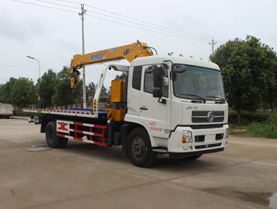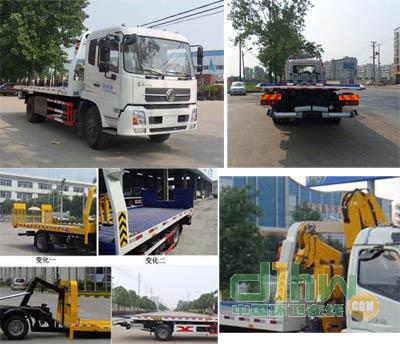 該車用途為道路故障車輛、城市違章車輛拖運;主要裝置為托臂、取力器、液壓油缸組成。隨底盤選裝駕駛室.選裝擺臂平板裝置和后攔板、選裝折臂式吊機.當選裝吊機時整備質(zhì)量為10650,托舉質(zhì)量:4955kg;當不選裝吊機時整備質(zhì)量7600kg, 托舉質(zhì)量8005kg。整車長度/軸距/后懸對應關系為:9650/5000/3220,9150/4700/3020.側防護材料碳鋼/Q235B,螺栓加焊接連接;后防護由專用裝置替代,下邊緣離地高450mm。ABS型號:ABS/ASR-24V-4S/4M,廠家:襄陽東風隆誠機械有限責任公司.ABS型號:3631010-C2000,4460046440;生產(chǎn)廠家:東科克諾爾商用車制動系統(tǒng)(十堰)有限公司,威伯科汽車控制系統(tǒng)(中國)有限公司.