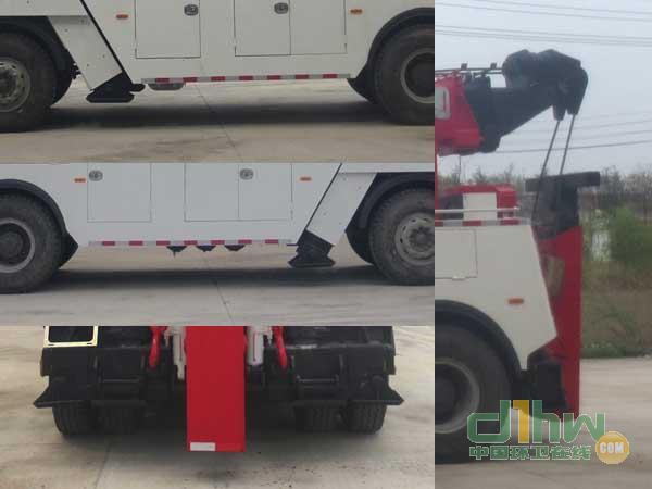 | 備注 | 1、采用軸距(mm)1800+4600+1350時(shí),外形長與后懸對應(yīng)關(guān)系為(mm):10960/1710,11150/1900,11410/2160,11460/2210;采用軸距(mm)1800+4575+1400時(shí),外形長與后懸對應(yīng)關(guān)系為(mm):10985/1710,11175/1900,11435/2160,11485/2210。工作裝置可選裝,選裝不同工作裝置時(shí),整備質(zhì)量與托舉質(zhì)量對應(yīng)關(guān)系為:①16T30DZ/27500kg/15370kg;②25T40DZ/30800kg/12070kg;③26T60DZ/33200kg/9670kg;④30T70DZ/35800kg/7070kg。2、側(cè)、后防護(hù)由專用裝置替代,后部托舉裝置下緣離地高500mm。ABS型號及廠家:4460046300/威伯科汽車控制系統(tǒng)(中國)有限公司。 | ||