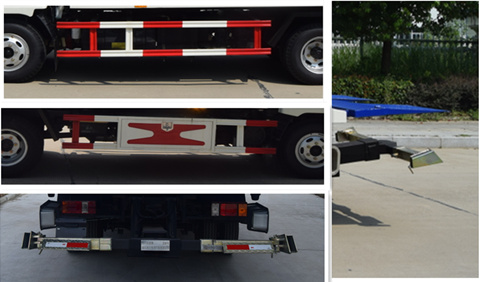 該車安裝清障裝置,用于道路故障車輛及城市違章車輛的清理;托舉質(zhì)量為515kg;側(cè)防護采用碳鋼/Q235B,螺栓連接,后下部防護由車輛后部結(jié)構(gòu)代替,離地高度為480mm;ABS廠家及型號:襄陽東風隆誠機械有限責任公司/ABS/ASR-24V-4S/4M。