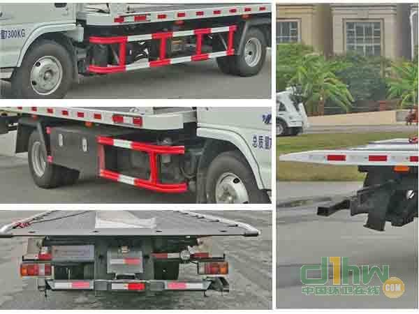 托舉質(zhì)量(kg):2700。選裝側(cè)面工具箱。選裝后尾板裝置,當(dāng)選裝后尾板裝置時,整車高度(mm):2230,整備質(zhì)量(kg):4990,托舉質(zhì)量(kg):2180。后尾板收起狀態(tài)的水平長度為100mm。防護(hù)材料:Q235A碳鋼,連接方式:左右側(cè)面防護(hù)采用焊接連接,后部專用裝置與后防護(hù)相干涉,故后防護(hù)豁免。ABS及其控制器型號為:APG3550500A4,生產(chǎn)廠家為:浙江亞太機電股份有限公司。