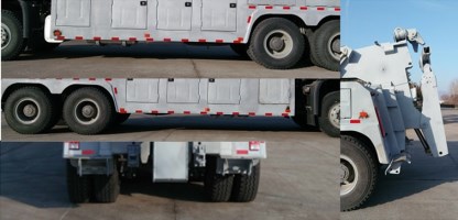 隨底盤(pán)選裝側(cè)拉門(mén)、普通前大燈。選裝發(fā)電機(jī)及發(fā)電機(jī)艙門(mén)。選裝車頂前額位置凸臺(tái),車頂可單獨(dú)或部分選裝設(shè)備平臺(tái)、換氣扇、空調(diào)、升降照明燈、場(chǎng)地照明燈、氣象儀。不裝發(fā)電機(jī)及蓄電池時(shí),整備質(zhì)量為3450kg。不裝車頂設(shè)備高2595mm,選裝車頂設(shè)備平臺(tái)高2800mm,選裝車載空調(diào)高2960mm,選裝升降照明燈(帶攝像頭)高3130mm,選裝升降照明燈(無(wú)攝像頭)高3015mm,選裝氣象儀高3490mm。后側(cè)窗及尾門(mén)窗可全部或部分選裝盲窗,選裝尾門(mén)左側(cè)或右側(cè)位置爬梯。車身一側(cè)或兩側(cè)選裝玻璃上掀窗或盲窗上掀窗,車頂一側(cè)或兩側(cè)選裝遮陽(yáng)蓬。裝備檢測(cè)工作桌、供電系統(tǒng)、檢測(cè)設(shè)備等專用裝置。