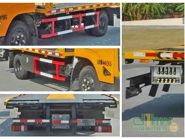 該車安裝清障平板,絞盤等專用裝置,用于道路故障車輛,城市違章車輛清障等工作。托舉質(zhì)量(kg):505;防護(hù)材料:Q235A碳鋼,連接方式:左右側(cè)面及后下部防護(hù)裝置均采用焊接連接, 后下部防護(hù)裝置斷面尺寸(mm):140×50,離地高度(mm):530。ABS系統(tǒng)型號:APG3550500A,ABS系統(tǒng)生產(chǎn)廠家:浙江亞太機(jī)電股份有限公司,選裝后尾板裝置,隨底盤選裝駕駛室