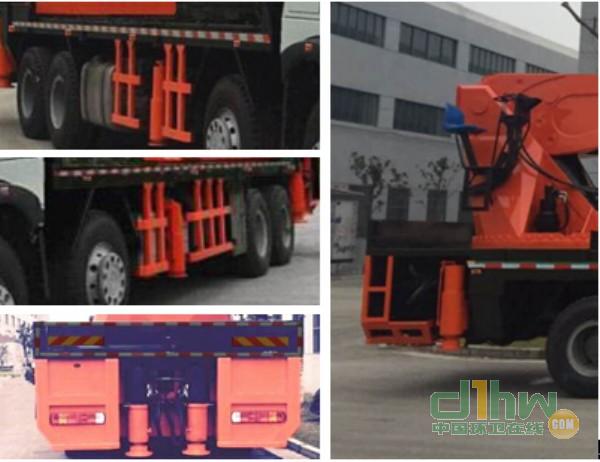 1.本車型已安裝側(cè)面和后部反光標(biāo)識;2.上裝托舉裝置起重機(jī):折疊臂式SQ1000,托舉質(zhì)量為4000Kg;選裝SQ1200,托舉質(zhì)量為4000Kg;選裝SQ3200托舉質(zhì)量為4000Kg;選裝尾部支腿;3.防護(hù)材料均為Q235,防護(hù)均采用螺栓連接,后部防護(hù)裝置的斷面尺寸為120毫米×50毫米,離地高度為500毫米.4.選裝遮陽罩,選裝后風(fēng)窗,5;安裝ABS系統(tǒng)型號為4460046300,生產(chǎn)企業(yè)為威伯科汽車控制系統(tǒng)(中國)有限公司,該車安裝具有衛(wèi)星定位功能的行駛記錄儀.該車僅用1800+4600+1350mm軸距。