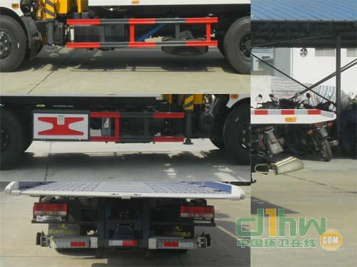 裝備SQ4S型起重機(自重1105Kg)時,托舉質(zhì)量2100kg,整備質(zhì)量7105kg;裝備SQ3.2S型起重機(自重1050Kg)時,托舉質(zhì)量2700kg,整備質(zhì)量6505kg,側(cè)防護材料碳鋼/Q235,螺栓連接;后防護由專用裝置替代,下邊緣離地高470mm。該車安裝清障裝置,用于道路故障車輛,城市違章車輛等工作。ABS型號:ABS/ASR-24V-4S/4M,廠家:襄陽東風(fēng)隆誠機械有限責(zé)任公司。