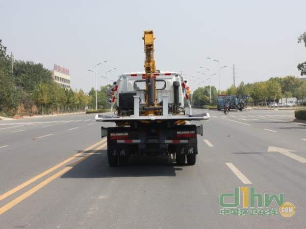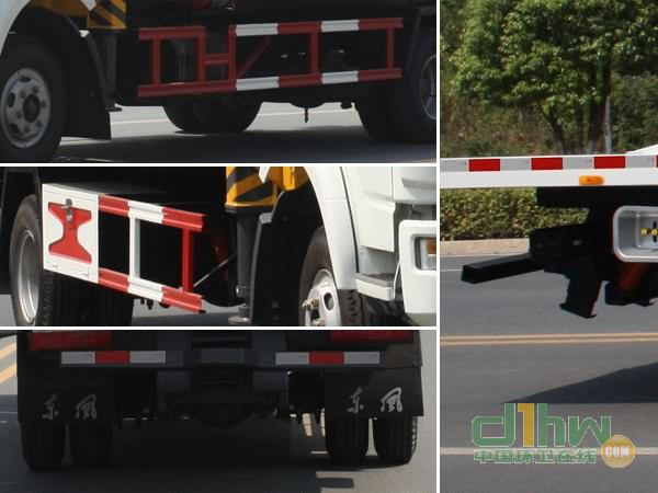 隨底盤選裝駕駛室,選裝擺臂式平板及后欄板,選裝折臂式吊機;托舉質(zhì)量:1300kg;ABS的型號:J ABS,生產(chǎn)廠家:焦作博瑞克控制技術(shù)有限公司;側(cè)面防護裝置材料材質(zhì):Q235,連接方式:焊接;后下部防護裝置因工作裝置干涉無法安裝故豁免.