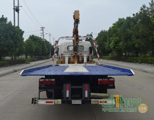 該車用途為清理道路故障車輛,城市違章車輛及搶險救援等;主要裝置為托臂,取力器,液壓油缸組成。隨底盤選裝前面罩,前保險杠,前組合燈具及前霧燈;直臂式吊機(jī)型號/吊機(jī)質(zhì)量(kg)/最大起升載荷(kg)分別為:SQS100-3/1480/1400;托舉質(zhì)量:2405kg;側(cè)防護(hù)材料碳鋼/Q235B,螺栓加焊接連接;后防護(hù)由專用裝置替代,下邊緣離地高450mm;ABS型號:ABS/ASR-24V-4S/4M,廠家:襄陽東風(fēng)隆誠機(jī)械有限責(zé)任公司.