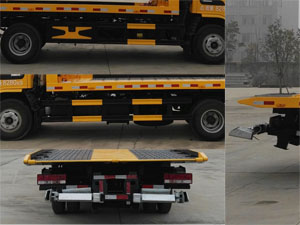托舉質(zhì)量3100kg,選裝擺臂平板裝置及后欄板結(jié)構(gòu)。側(cè)防護(hù)裝置材料:Q235,螺栓連接;后防護(hù)由專(zhuān)用裝置替代。僅采用3815mm軸距。隨底盤(pán)選裝駕駛室。ABS系統(tǒng)控制器型號(hào)/生家:CM4XL-4S/4K (4S/4M)/廣州市科密汽車(chē)制動(dòng)技術(shù)開(kāi)發(fā)有限公司。