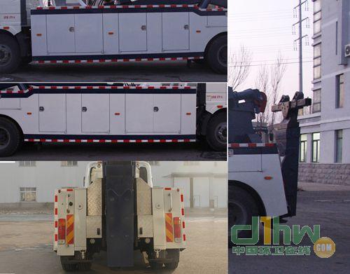 隨底盤選裝側拉門、普通前大燈。選裝發(fā)電機及發(fā)電機艙門。選裝車頂前額位置凸臺,車頂可單獨或部分選裝設備平臺、換氣扇、空調、升降照明燈、場地照明燈、氣象儀。不裝發(fā)電機及蓄電池時,整備質量為3450kg。不裝車頂設備高2595mm,選裝車頂設備平臺高2800mm,選裝車載空調高2960mm,選裝升降照明燈(帶攝像頭)高3130mm,選裝升降照明燈(無攝像頭)高3015mm,選裝氣象儀高3490mm。后側窗及尾門窗可全部或部分選裝盲窗,選裝尾門左側或右側位置爬梯。車身一側或兩側選裝玻璃上掀窗或盲窗上掀窗,車頂一側或兩側選裝遮陽蓬。裝備檢測工作桌、供電系統(tǒng)、檢測設備等專用裝置。