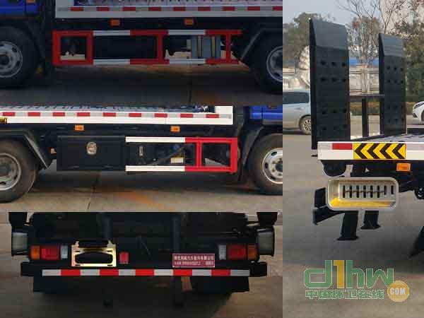 1,托舉質量:500kg。該車主要專用裝置為平板。2,側,后防護材料均為Q235, 側防護螺栓連接,后防護焊接,截面尺寸120×50mm,離地高480mm。3,隨底盤選裝駕駛室。ABS型號/企業(yè):CM4XL-4S/4M/廣州瑞立科密汽車電子股份有限公司。選裝后部兩側伸縮板。