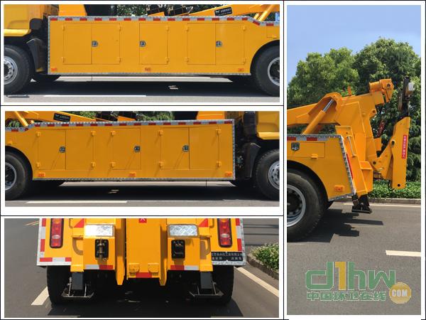 托舉質量:5605kg;選裝前組合燈、前霧燈、前面罩、前保險杠。發(fā)動機YC6JA180-50,YC6JA200-50,YC6JA220-50,CA6DLD-22E5的最大凈功率分別為128,143,158,162kW;ABS系統(tǒng)控制器型號/生產企業(yè):VIE ABS-II/浙江萬安科技股份有限公司,CM4XL-4S/4M/廣州科密汽車電子控制技術股份有限公司;該車選裝不帶伸縮吊臂時整備質量為11830kg,托舉質量為5975kg;車身為裙板結構,車身下邊緣離地高度為425mm,后部是清障車專用裝置替代后防護,離地高度380mm。