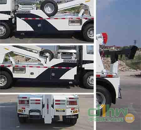 吊機3T3D3自重750kg,托舉質(zhì)量:2470kg。選裝液壓自動抱胎托舉裝置。車身兩側(cè)為Q235鋼板材質(zhì)裙板防護,后部防護為專用裝置替代,離地高度為490mm。ABS及其控制器型號為:APG3550500A4,生產(chǎn)廠家為:浙江亞太機電股份有限公司。